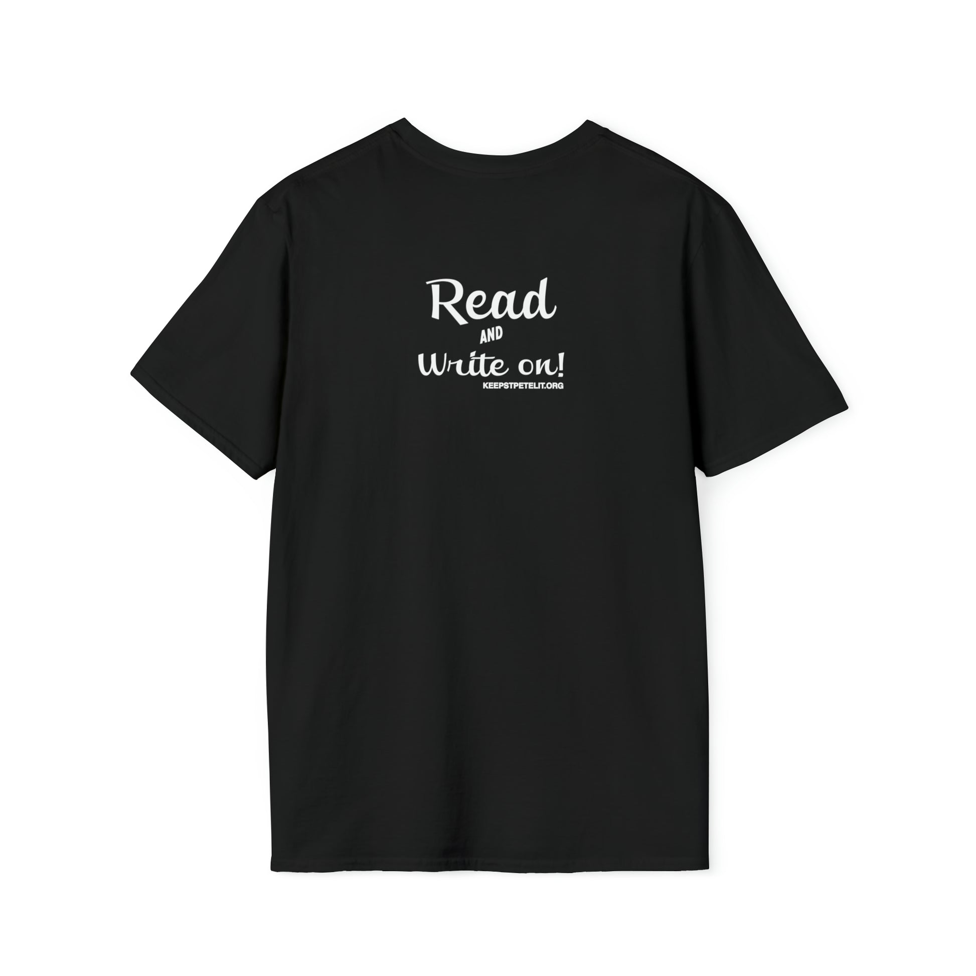 Keep St. Pete Lit has partnered with local artist James McDole to produce the Boo Book unisex soft-style t-shirt. The Spooky version comes in black with white lettering on the back. This T-shirt puts a new spin on casual comfort. Made from very soft materials, this tee is 100% cotton. The shoulders have twill tape for improved durability. There are no side seams. The collar is made with ribbed knitting to prevent curling damage.